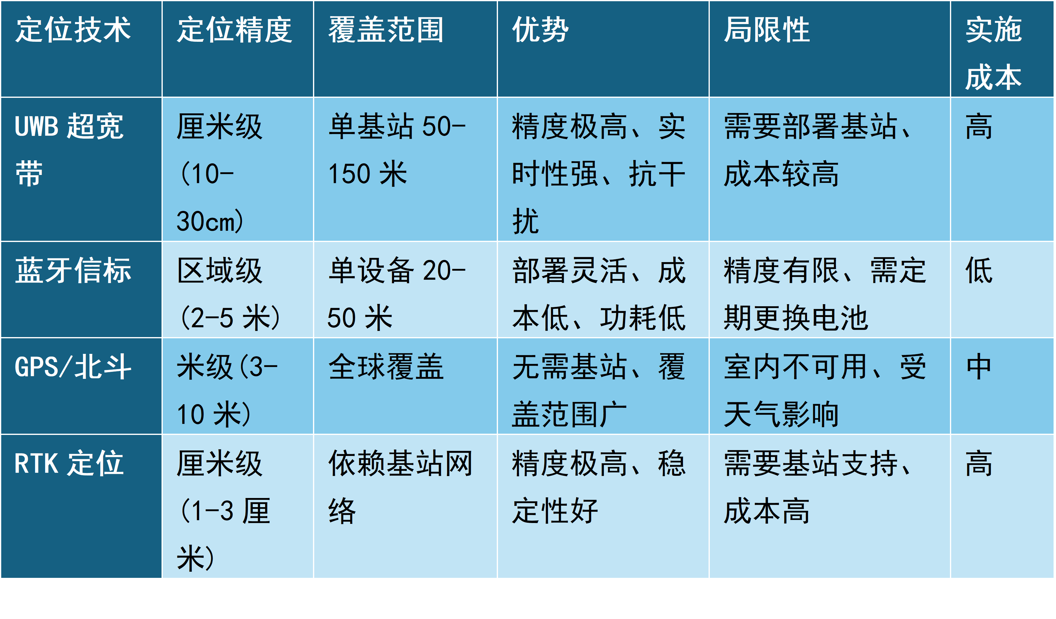 常見的定位技術(shù)對比