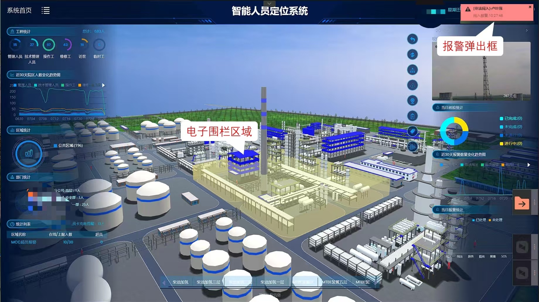 航飛光電定位系統內置智能預警引擎,支持多種告警規則設置。系統可對人員闖入危險區域、長時間靜止、聚集超員等異常行為進行自動識別和實時告警,實現安全風險的前置管控。